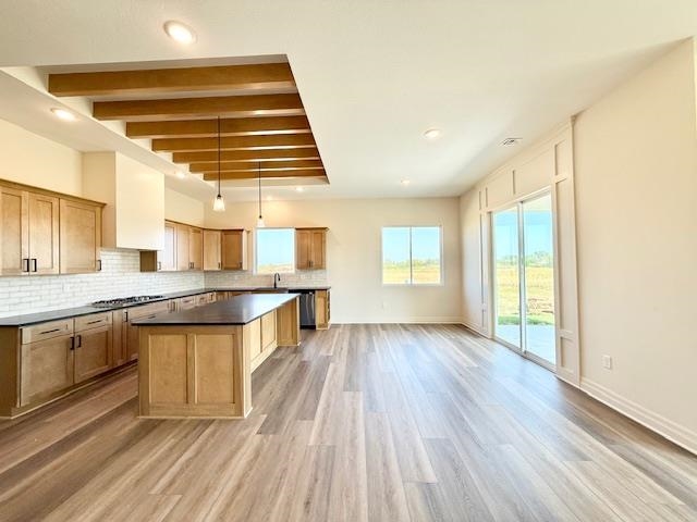 ceilings and large windows that fill the living space with natural light. The heart of the home is the huge kitchen, featuring abundant